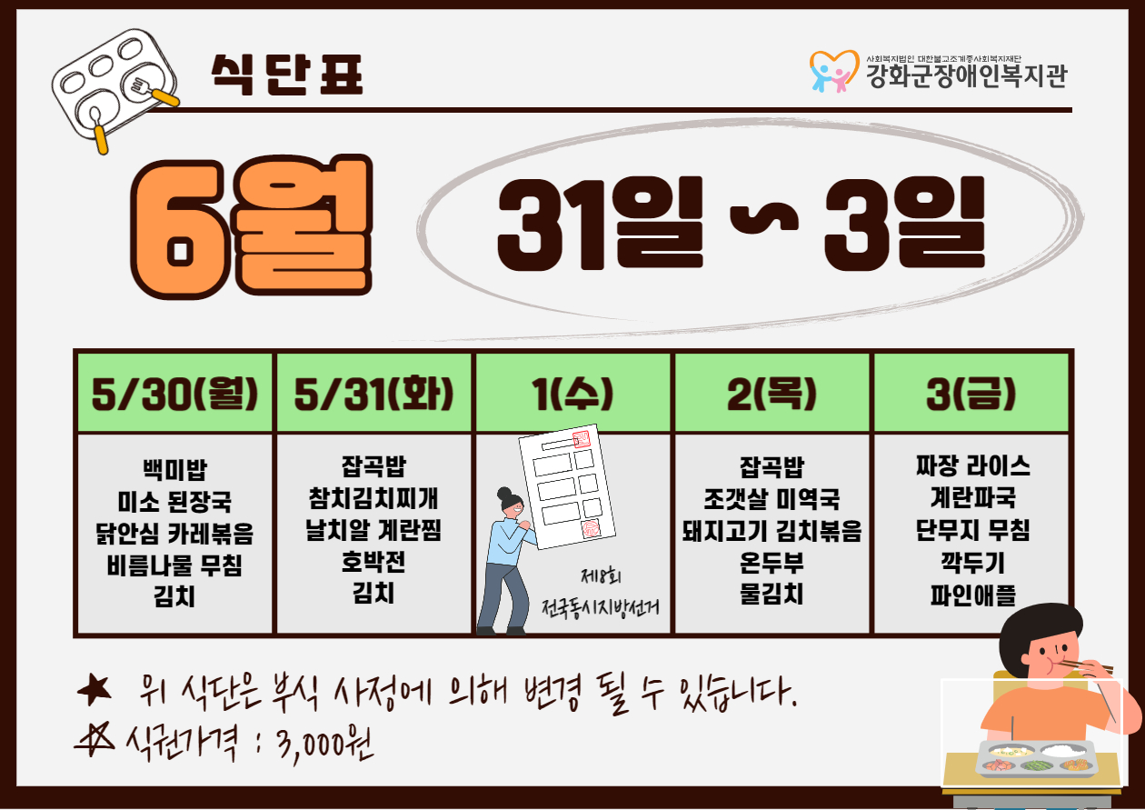 2022³â 6¿ù 1ÁÖ ½Ä´ÜÇ¥(5. 30. ~ 6. 3.)