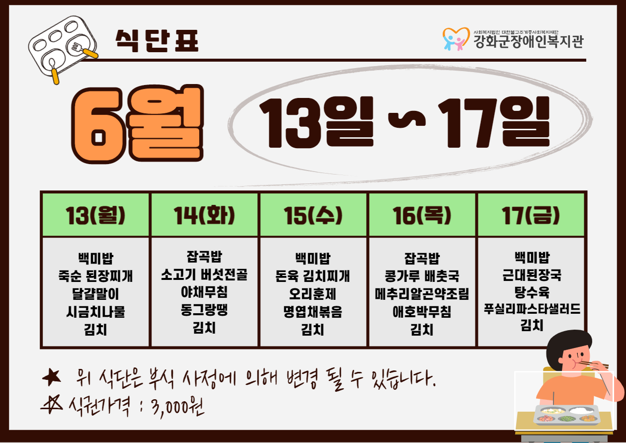 2022³â 6¿ù 3ÁÖ ½Ä´ÜÇ¥(6. 13. ~ 6. 17.)