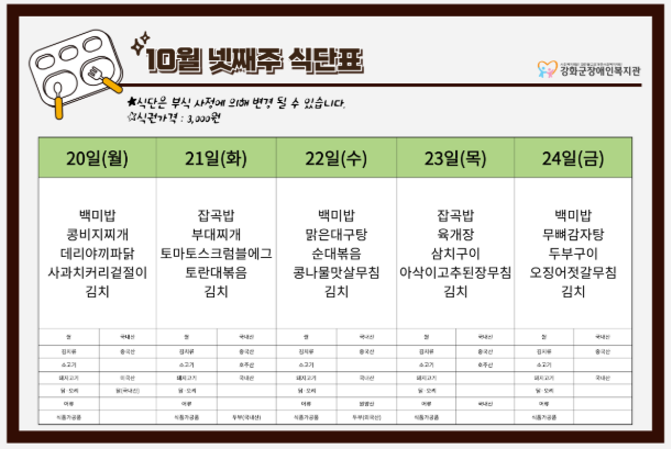 2025³â 10¿ù 4ÁÖ ½Ä´ÜÇ¥(10. 20. ~ 10. 24.)