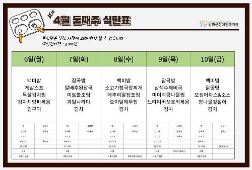 2026³â 4¿ù 2ÁÖ ½Ä´ÜÇ¥(4. 6. ~ 4. 10.)