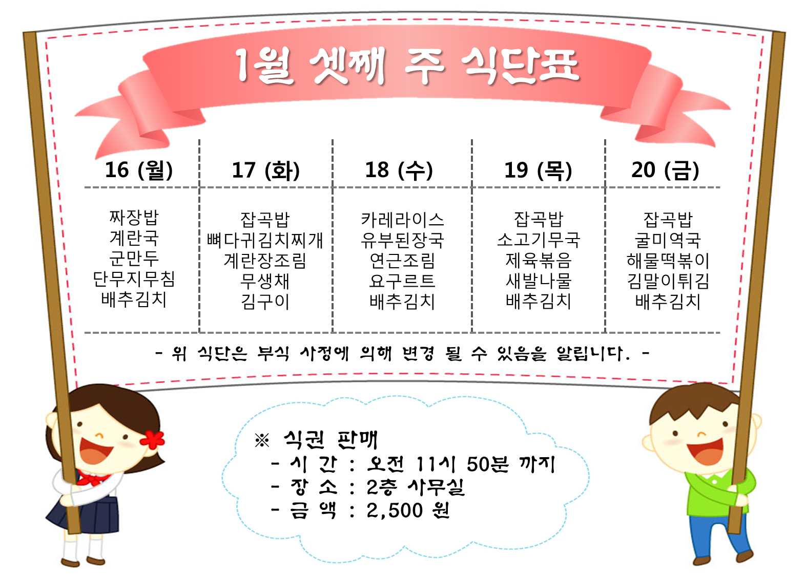 1¿ù ¼Â° ÁÖ ½Ä´ÜÇ¥