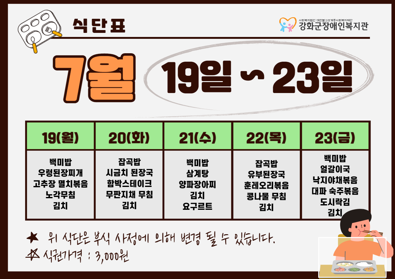 2021³â 7¿ù 4ÁÖ ½Ä´ÜÇ¥(7. 19. ~ 7. 23.)