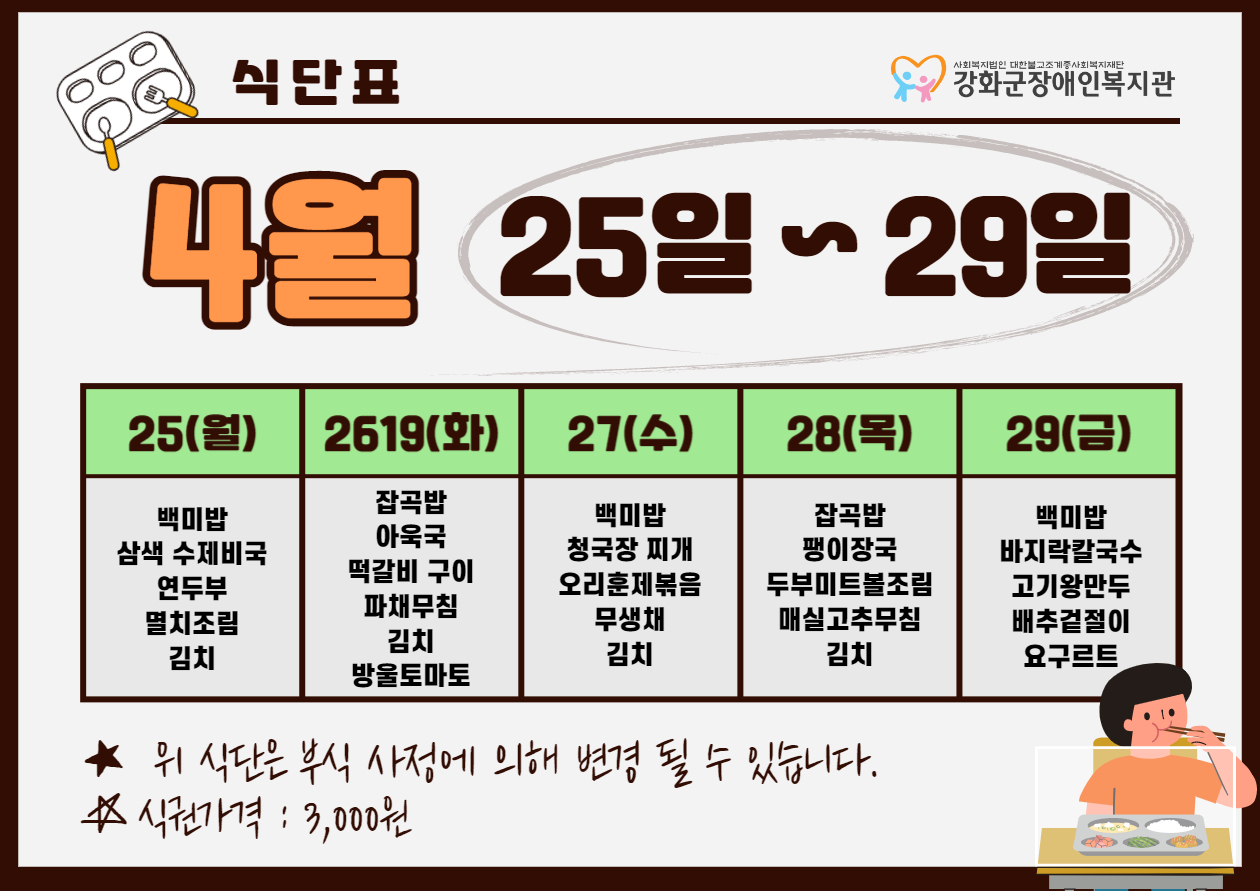 2022³â 4¿ù 4ÁÖ ½Ä´ÜÇ¥(4. 25. ~ 4. 29)