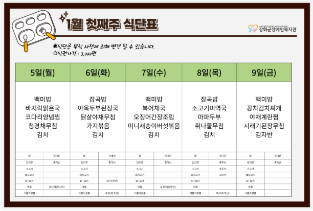 2026³â 1¿ù 1ÁÖ ½Ä´ÜÇ¥(1. 5. ~ 1. 9.)