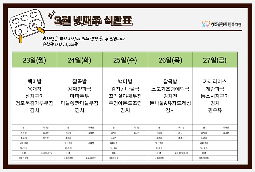 2026³â 3¿ù 4ÁÖ ½Ä´ÜÇ¥(3. 23. ~ 3. 27.)