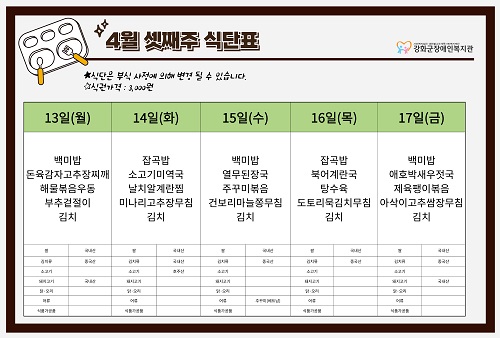 2026³â 4¿ù 3ÁÖ ½Ä´ÜÇ¥(4. 13. ~ 4. 17.)