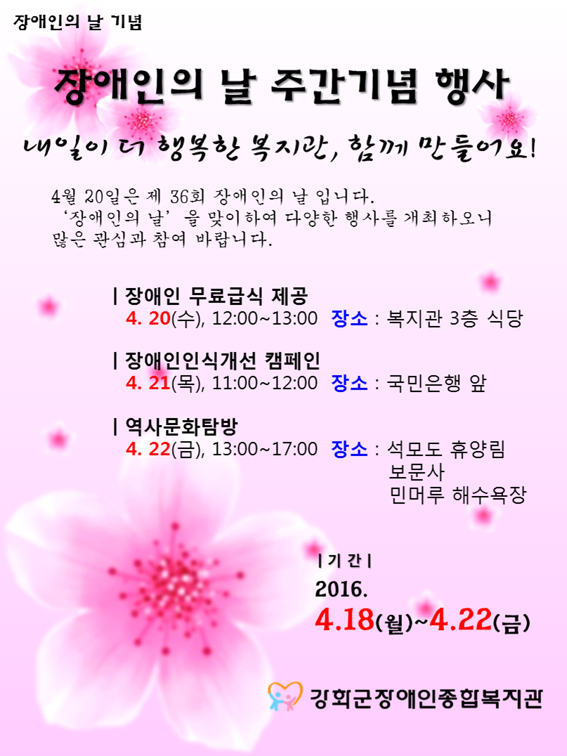 [¾È³»] Àå¾ÖÀÎÀÇ ³¯ ÁÖ°£±â³ä Çà»ç ¾È³»